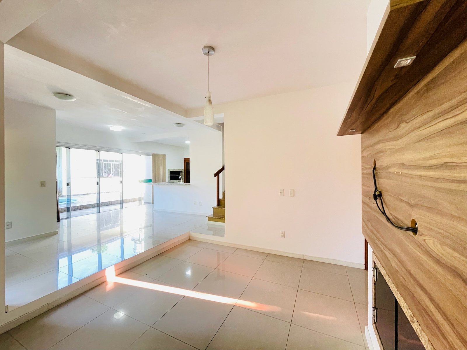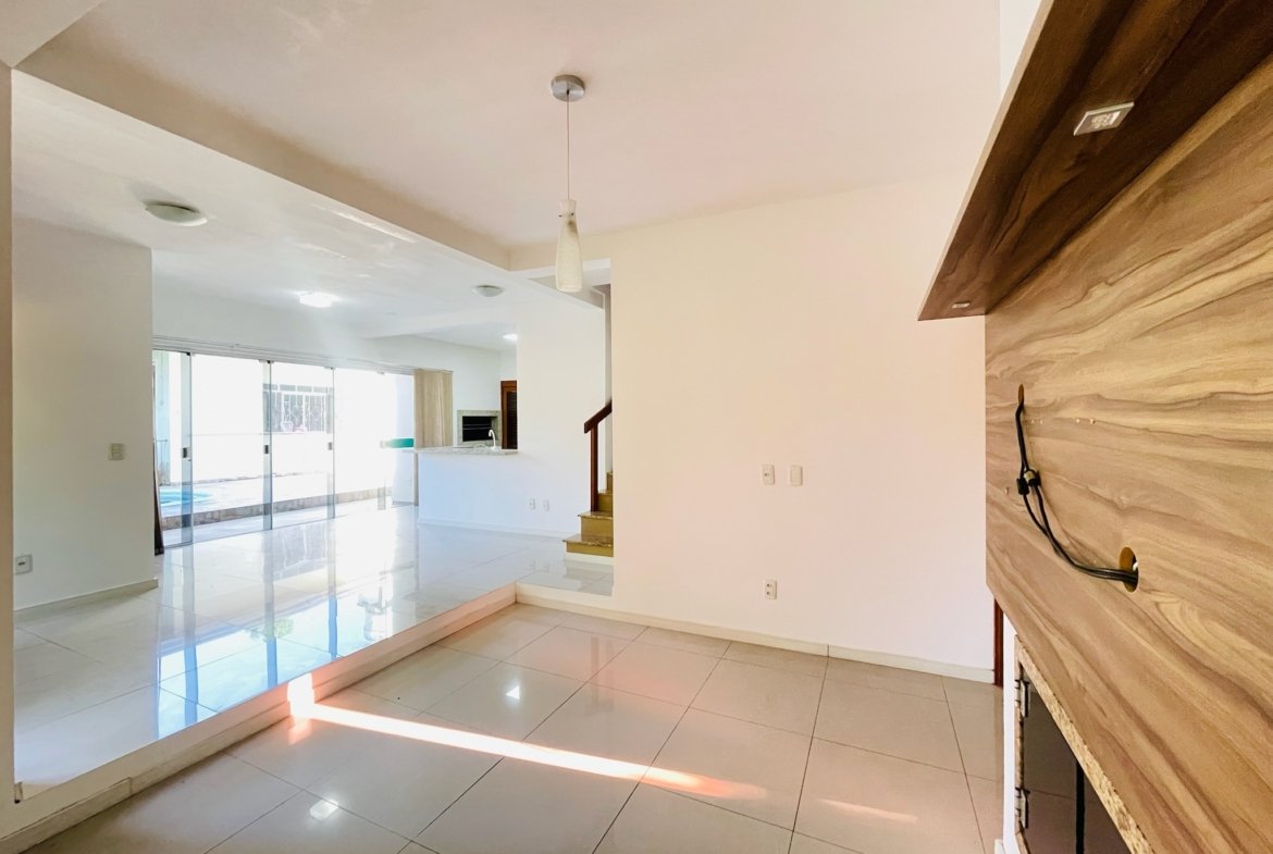 ✔ Sala de estar com lareira e painel de tv