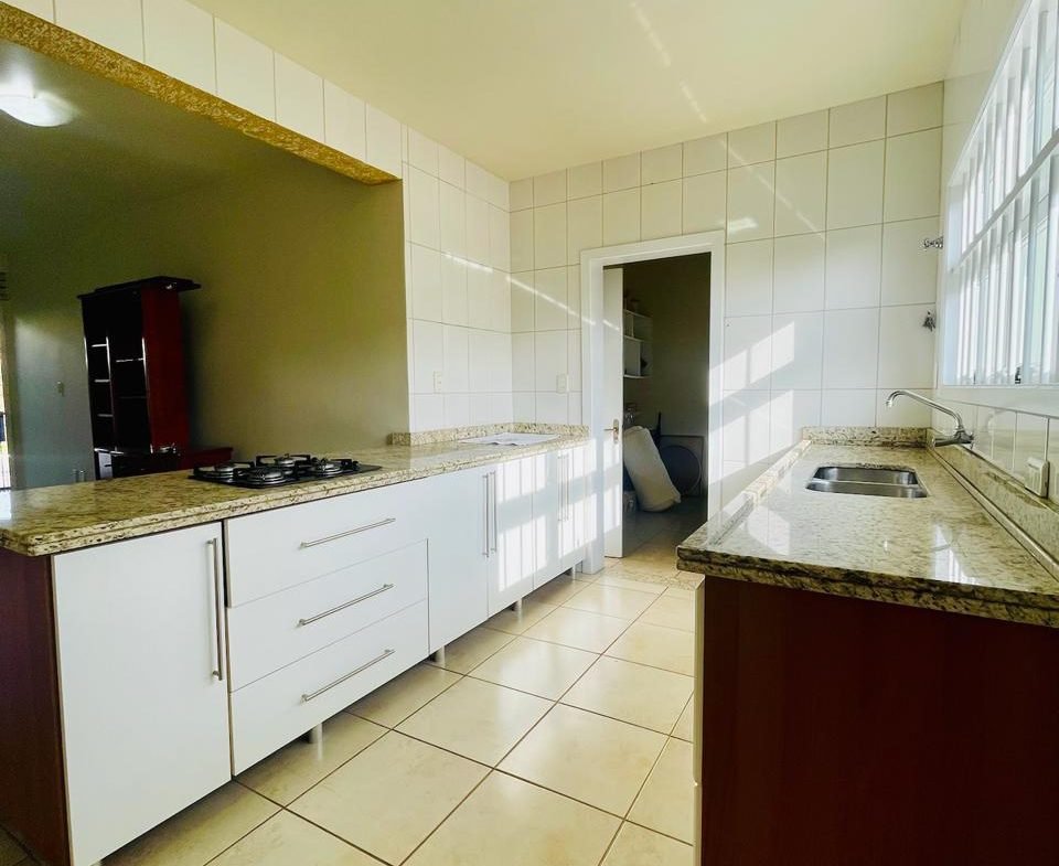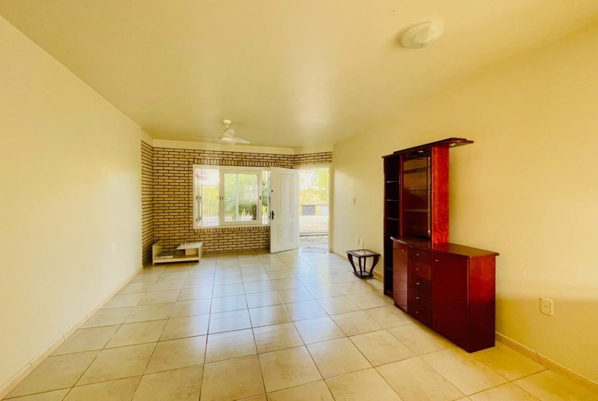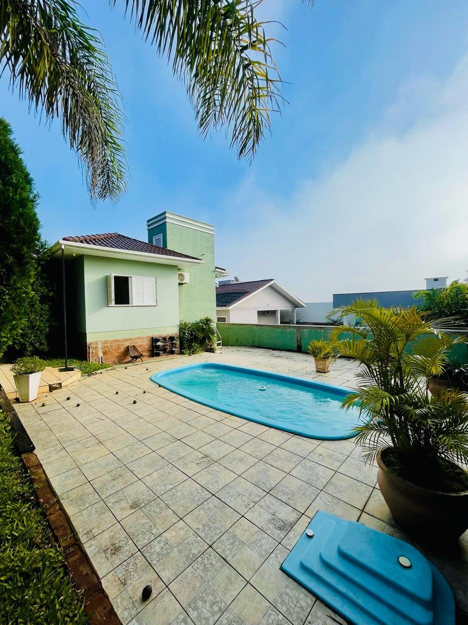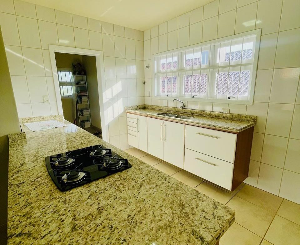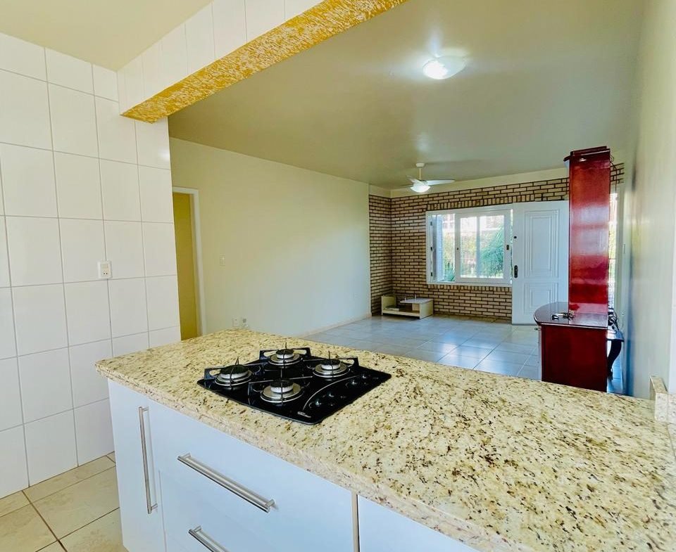 Casa com 03 dormitórios, um sendo suíte, sala, cozinha, 02 banheiros, área de serviço e garagem para 01 carro, quintal com churrasqueira e piscina. Escritura.