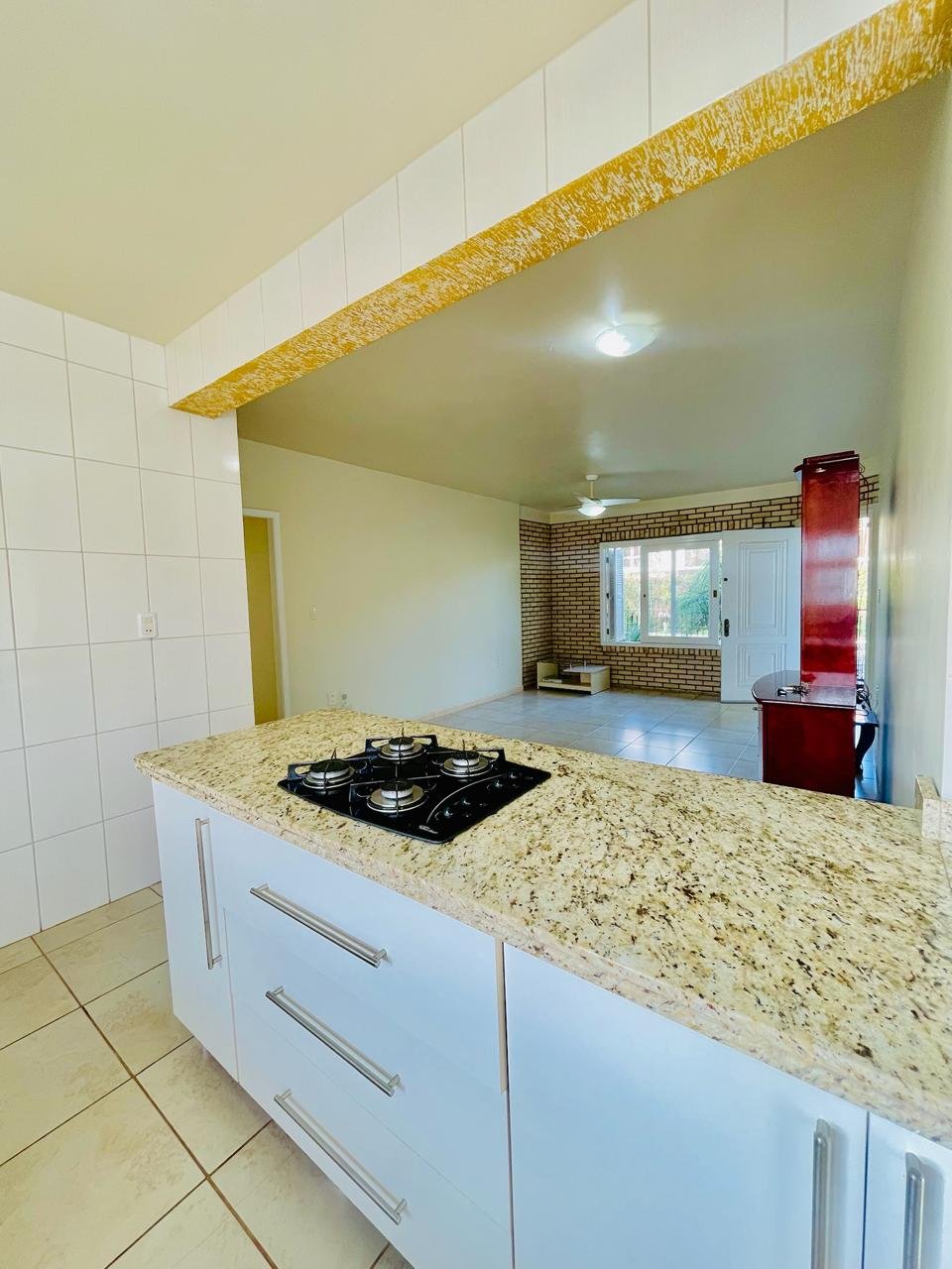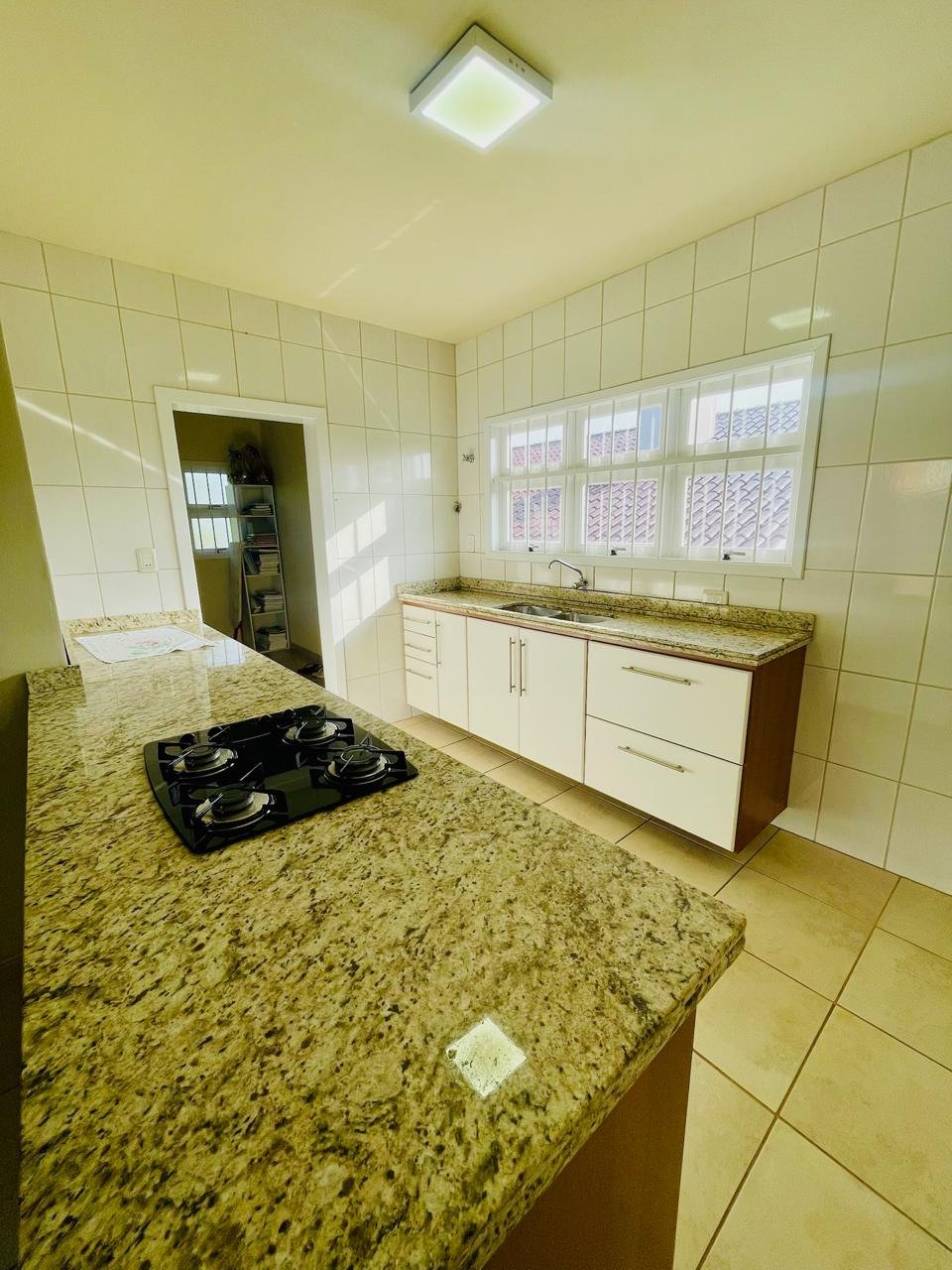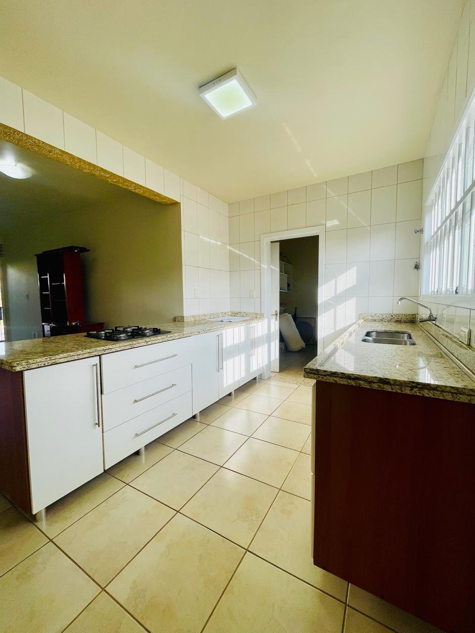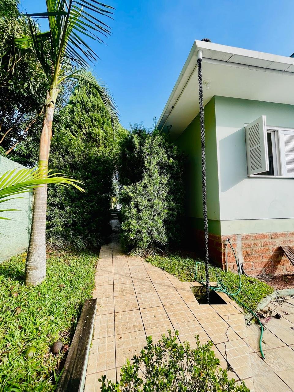 Casa com 03 dormitórios, um sendo suíte, sala, cozinha, 02 banheiros, área de serviço e garagem para 01 carro, quintal com churrasqueira e piscina. Escritura.